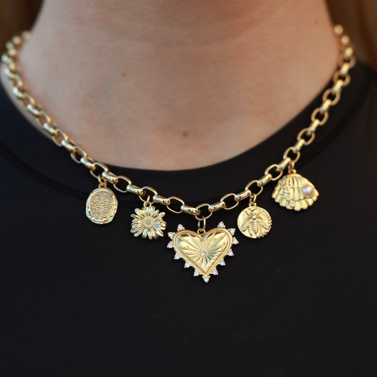 18K Gold Plated Rolo Chain Shackle Necklace with Cross Charm - Customizable