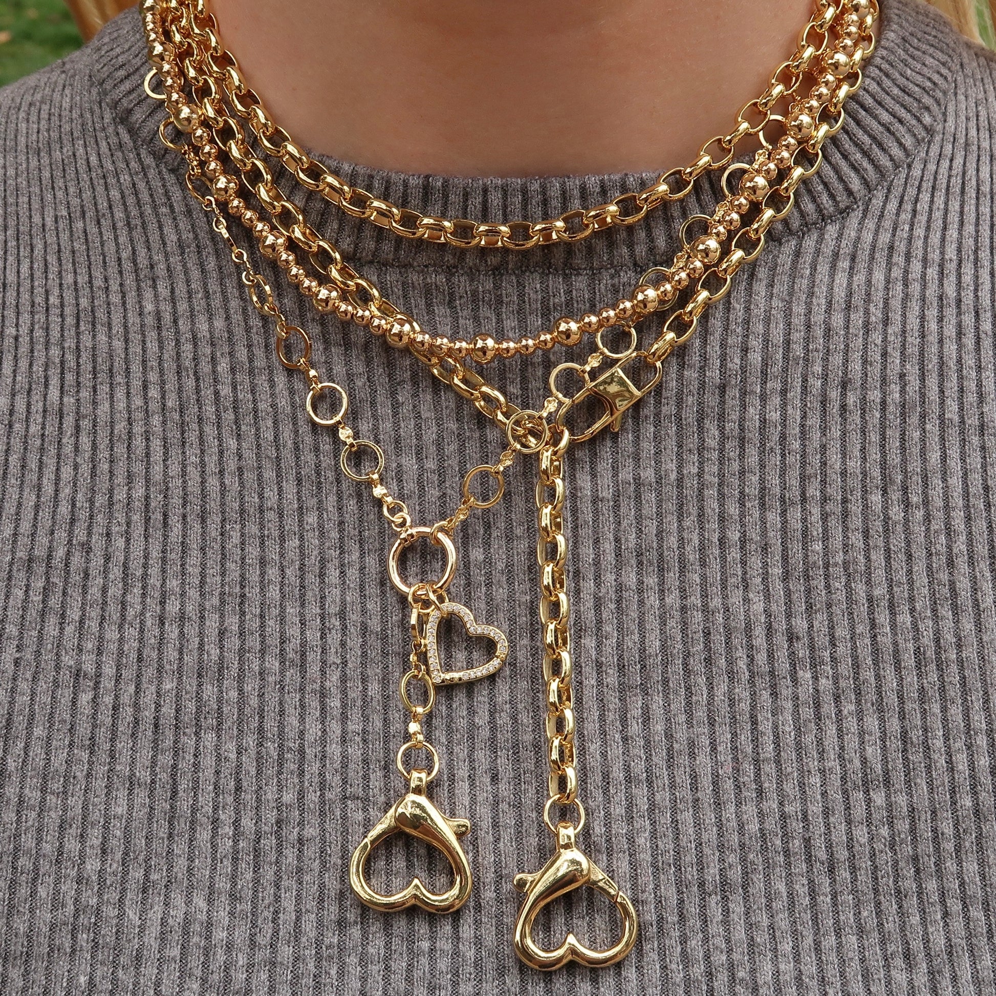 14K gold filled chain with toggle clasp and dangling heart clasp. Handmade by me with all 14k gold filled materials.