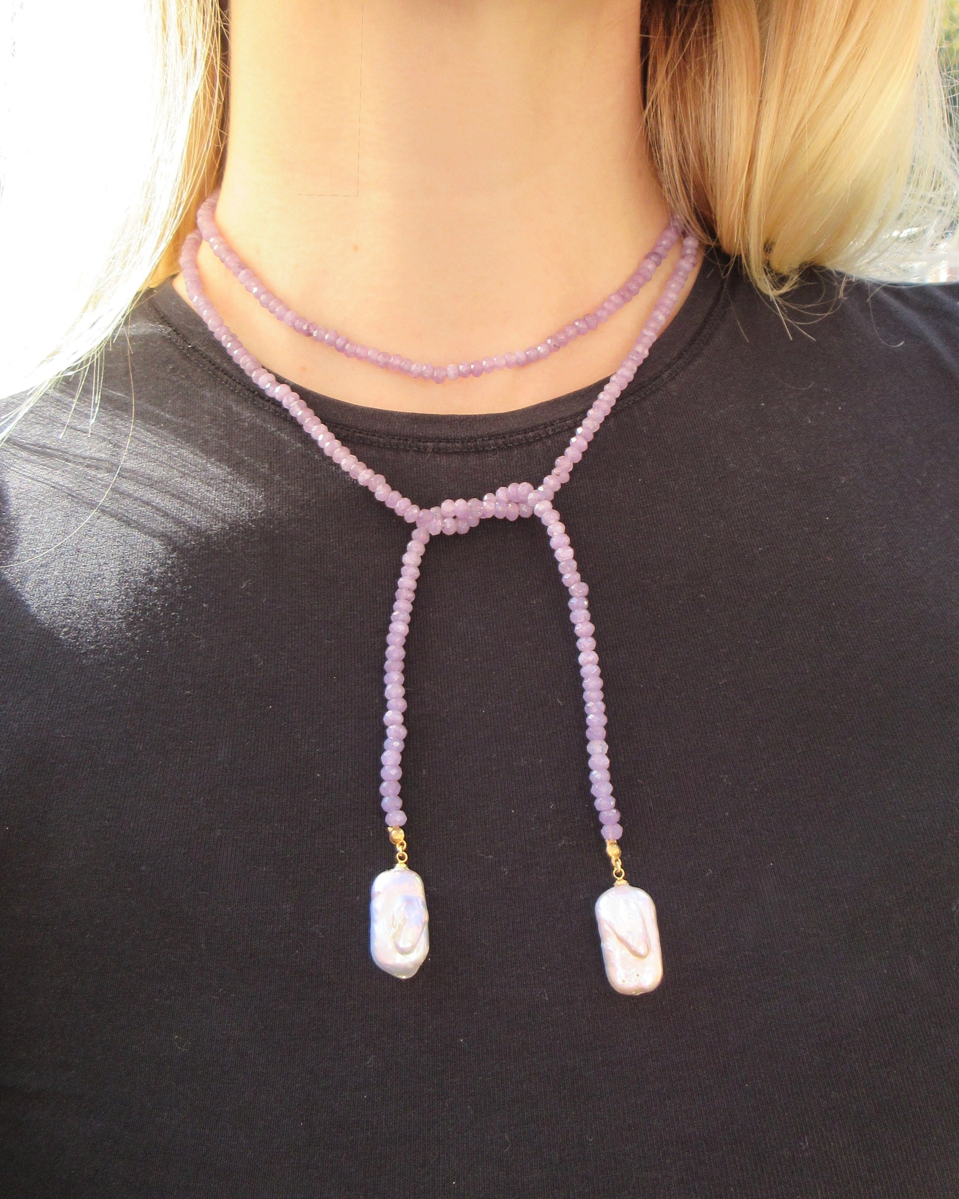 Introducing The Purple Reign! A wrap beaded necklace featuring 4mm purple agate rondelle beads, finished with two freshwater baroque pearls at the ends. Perfect for gameday or everyday wear! Can be worn so many different ways!