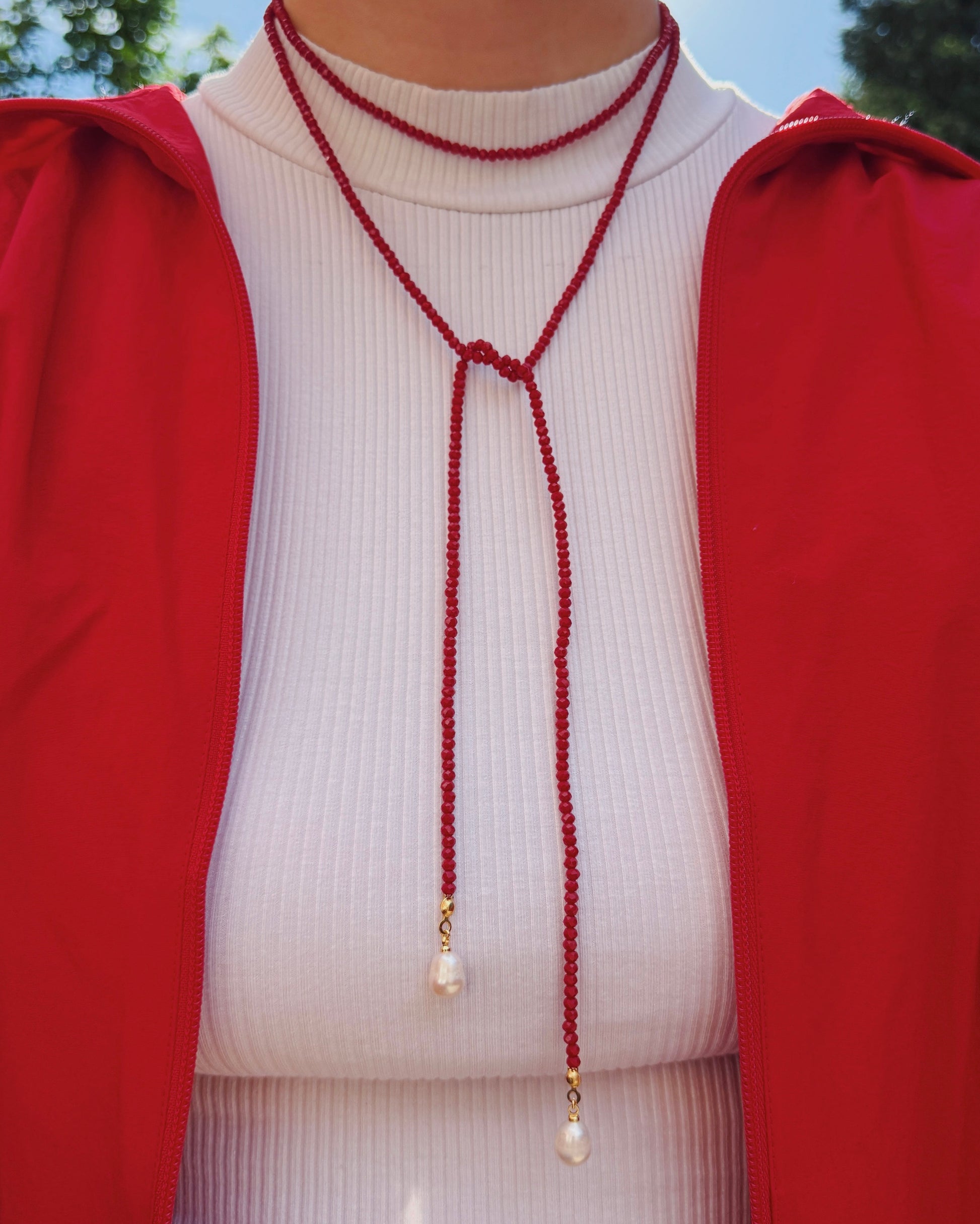 The Crimson Wrap Beaded Necklace