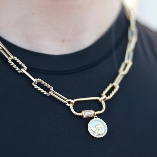 14k Gold Filled Carabiner Charm Necklace with Angel Charm