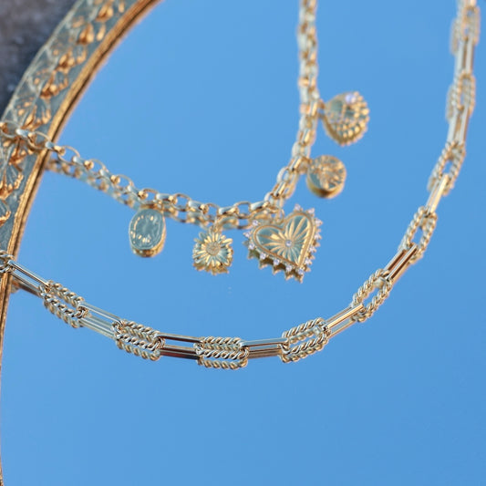 18K Gold Plated Rolo Chain Shackle Necklace with Cross Charm - Customizable